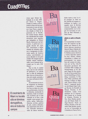 La Revista Literaria Baquiana y Ediciones Baquiana trabajan bastante con el Centro Cultural Español de Cooperación Iberoamericana, una de las organizaciones más activas en el quehacer cultural de la ciudad en español. Se puede decir que el CCECI y los españoles han ayudado muchísimo al crecimiento y desarrollo de la vida literaria y artística de los hispanos que residen en el sur de la Florida.