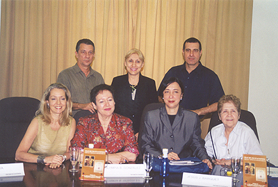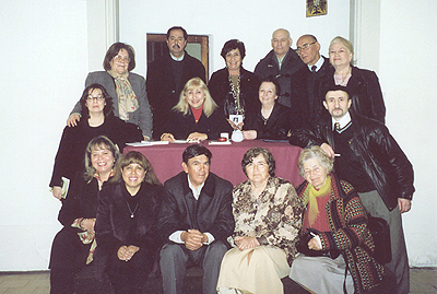 Reunida con miembros de la Asociación de Poetas y Escritores de Valparaíso después de una lectura poética en el Castillo Wulff. Viña del Mar, Chile. (Agosto de 2003) |